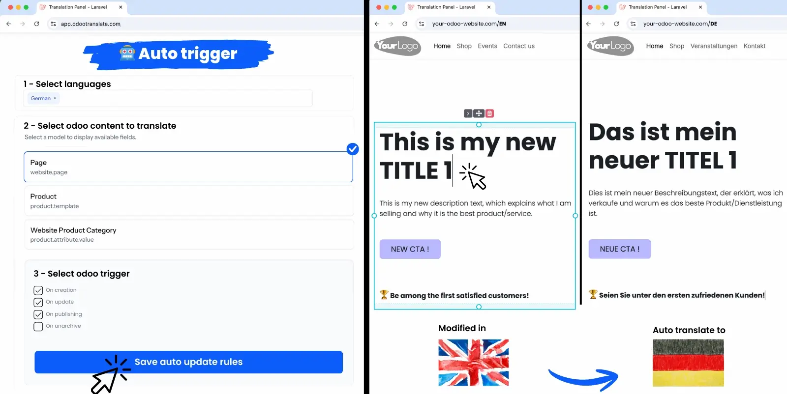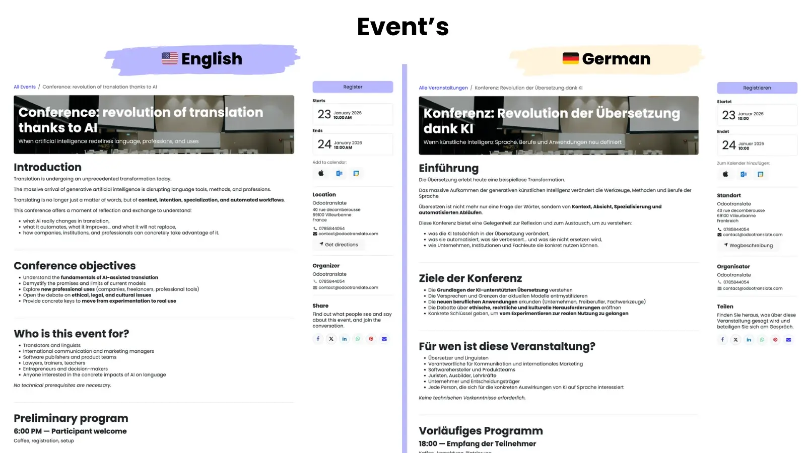 Accédez instantanément à Odootranslate et découvrez par vous-même son fonctionnement. Continuez à l'utiliser gratuitement ou passez au niveau supérieur pour bénéficier de services premium.