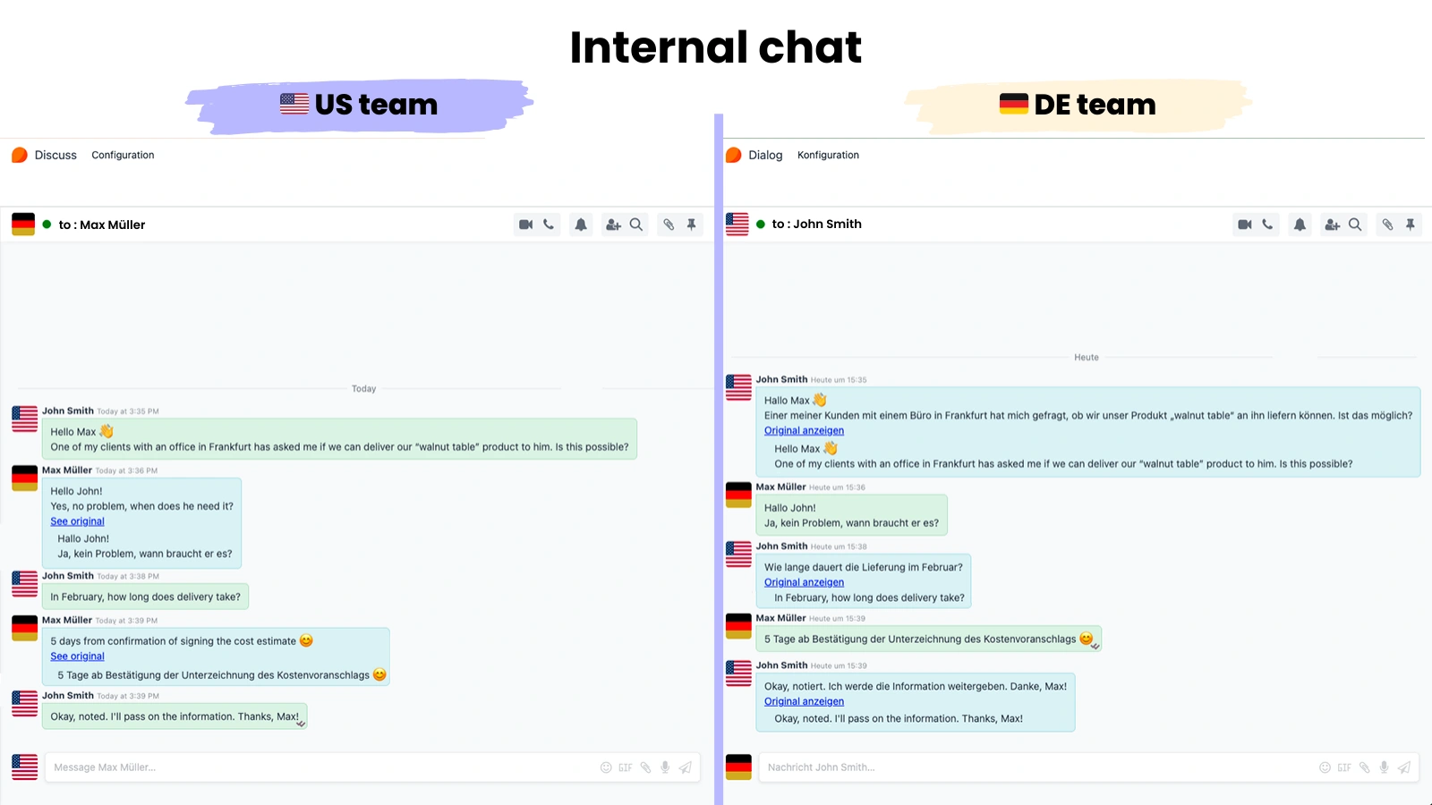 Simplifiez les échanges client-équipe et les messages internes de vos équipes multilingues.